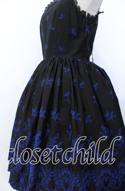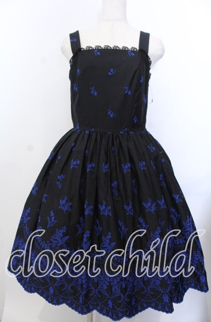 Moi-meme-Moitie / May lilyジャンパースカート 9号 ブラック×ブルー O-25-11-28-047-MO-OP-OW-OS