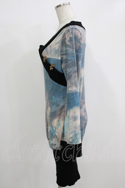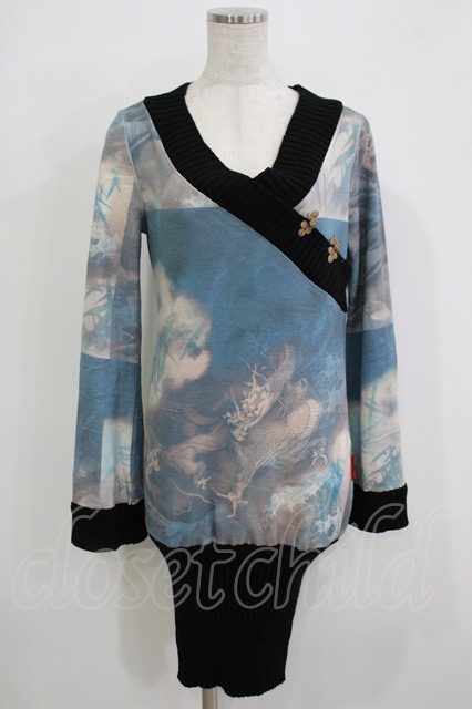 Ozz oneste / プリントニットワンピ ブルー H-25-11-26-021-OO-OP-KB-ZH [2100030000079077-H-25-11-26-021-OO-OP-KB-ZH]