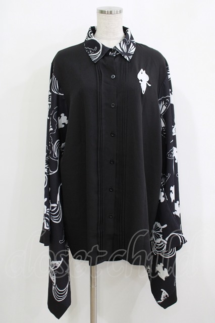 NieR Clothing / 着物風袖ブロッキングシャツ ブラック H-25-11-26-035-PU-BL-KB-ZH [2100030000078747-H-25-11-26-035-PU-BL-KB-ZH]