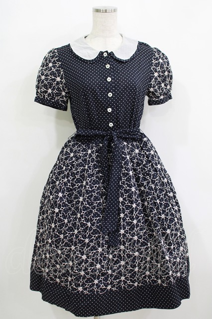 Jane Marple / フラワードットレースのワンピース M ネイビー H-25-11-26-011-JM-OP-KB-ZH [2100030000076137-H-25-11-26-011-JM-OP-KB-ZH]