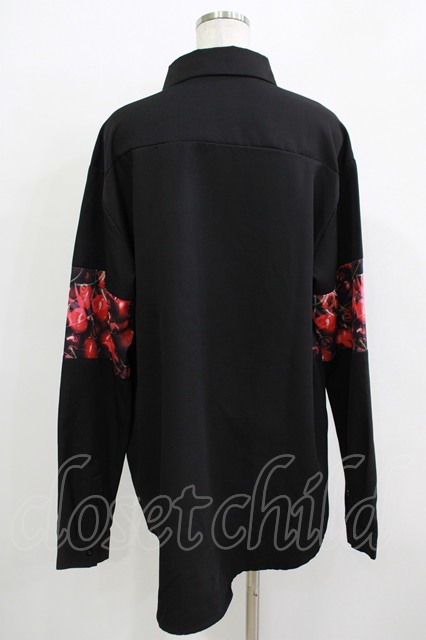 NieR Clothing / プリント切替ブラウス 黒×チェリープリント H-25-11-26-032-PU-BL-KB-ZH