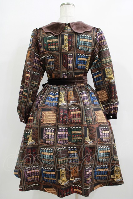 Q-pot. / Melty Bookshelfパフスリーブドレス M ブラウン H-25-11-26-001-QP-OP-KB-ZH