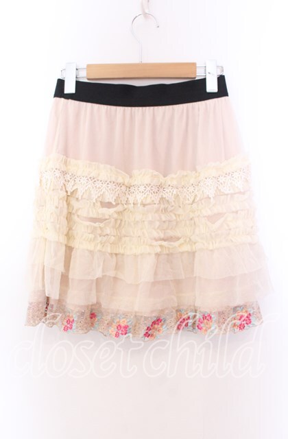 axes femme / 裾カラー刺繍チュールスカート M アイボリー O-25-11-29-034-AX-SK-IG-OS [2100080000066105-O-25-11-29-034-AX-SK-IG-OS]