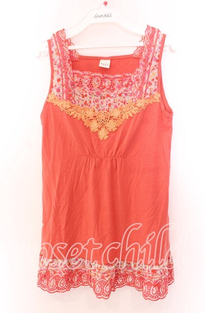 axes femme / 花柄切り替え刺繍タンクトップ オレンジ O-25-11-29-069-AX-TO-IG-OS [2100080000066046-O-25-11-29-069-AX-TO-IG-OS]