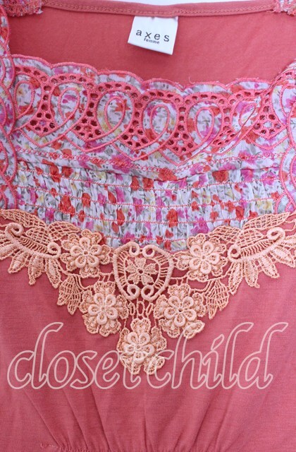 axes femme / 花柄切り替え刺繍タンクトップ オレンジ O-25-11-29-069-AX-TO-IG-OS