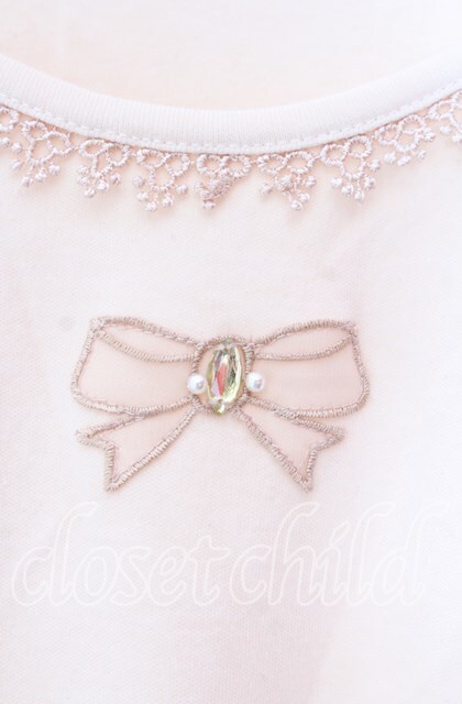 axes femme / チュールリボンアップリケカットソー アイボリー O-25-11-29-079-AX-TO-IG-OS