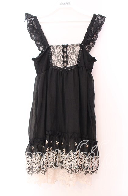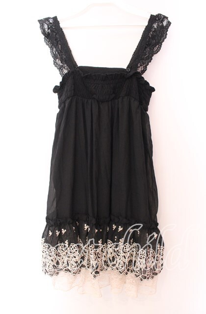 axes femme / 薔薇刺繍チュニック M クロ O-25-11-29-029-AX-TO-IG-OS