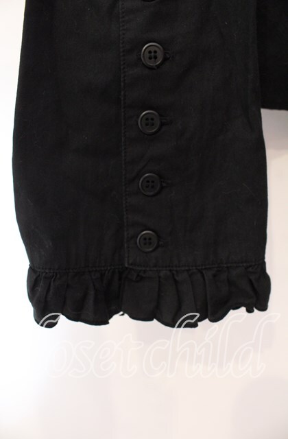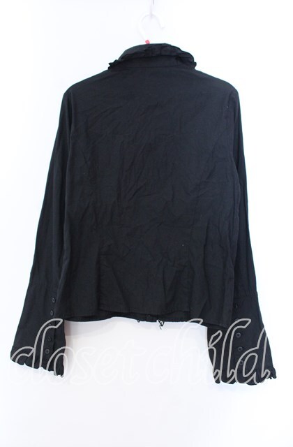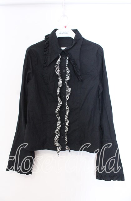 PEACE NOW / ストライプフリルブラウス M ブラック O-25-11-29-004-PU-BL-IG-OS