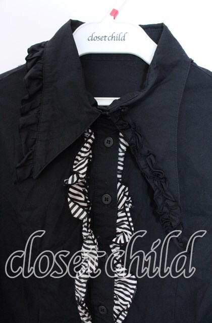 PEACE NOW / ストライプフリルブラウス M ブラック O-25-11-29-004-PU-BL-IG-OS [2100080000065999-O-25-11-29-004-PU-BL-IG-OS]