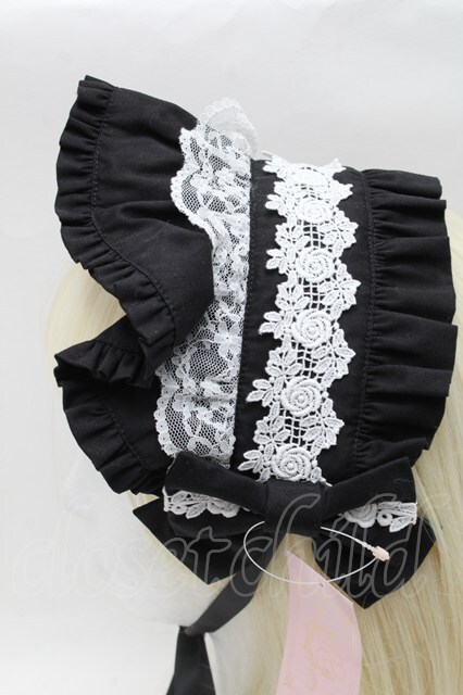 metamorphose / フリルブリム付ヘッドドレス 黒x白 S-25-11-28-018-ME-AC-AS-ZS