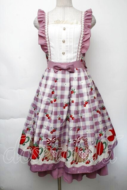 axes femme kawaii / ベリーズピクニックジャンパースカート ピンク S-25-11-28-1045-AX-OP-AS-ZS