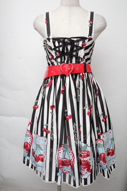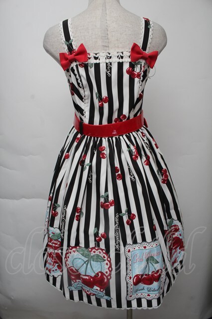 Angelic Pretty / Cherry Stampジャンパースカート 黒x白 S-25-11-28-1052-AP-OP-AS-ZS [2100020000034543-S-25-11-28-1052-AP-OP-AS-ZS]
