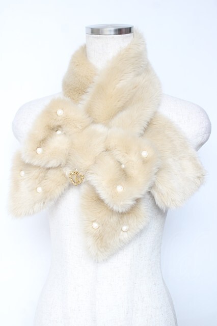 BABY, THE STARS SHINE BRIGHT / リボンとパールのファーマフラー キャメル Y-25-12-01-017-BA-ZA-SZ-ZY