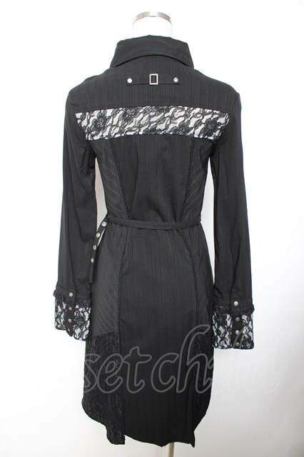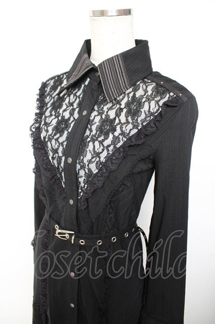Ozz Croce / レースフリルシャツワンピース 黒 Y-25-12-01-025-OO-OP-SZ-ZY