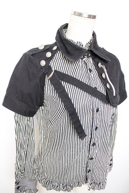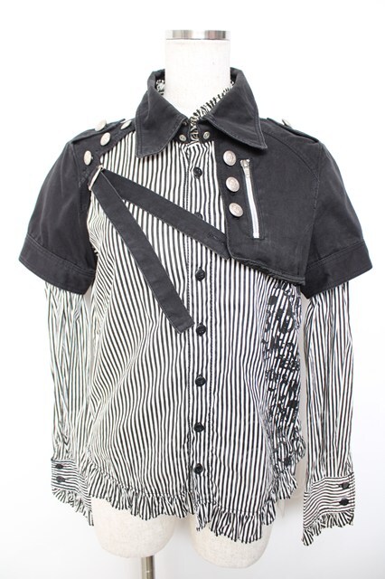 ALGONQUINS / プリント入りストライプレイヤードシャツ F 白×黒 Y-25-12-01-026-AL-BL-SZ-ZY