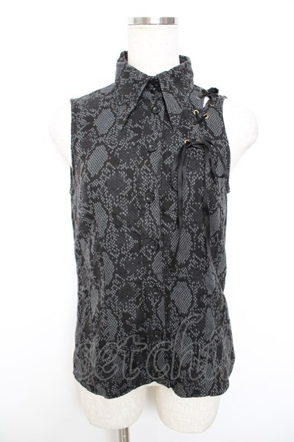 PEACE NOW / アームカバー付きパイソン柄ブラウス M 黒×グレー Y-25-12-01-028-PU-BL-SZ-ZY [2100070000055240-Y-25-12-01-028-PU-BL-SZ-ZY]