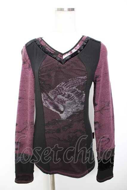 Ozz oneste / メッシュレイヤードトップス 黒×紫 Y-25-12-01-032-OO-TO-SZ-ZY [2100070000055198-Y-25-12-01-032-OO-TO-SZ-ZY]