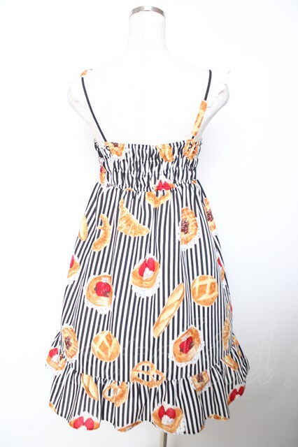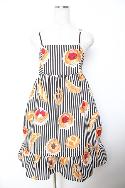 Emily Temple cute / バケットストライプレースショルダーワンピース 黒 Y-25-12-01-079-ET-OP-SZ-ZY