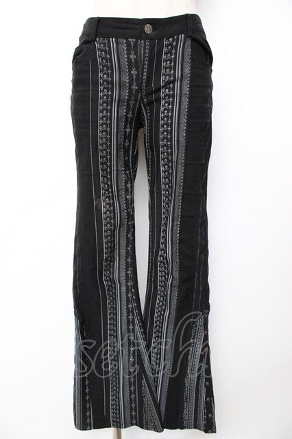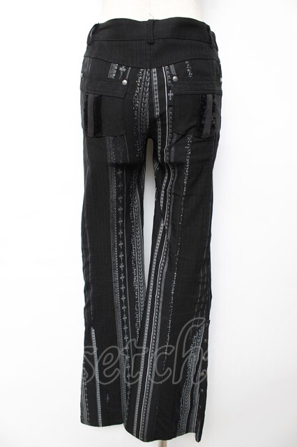 Ozz Croce / ストライプスカルptフレアパンツ 黒×グレー Y-25-12-01-125-OO-PA-SZ-ZY [2100070000055194-Y-25-12-01-125-OO-PA-SZ-ZY]