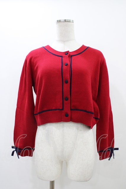 Fi.n.t / 袖口リボンバイカラーニットカーディガン Free RED/NV H-25-12-07-1050-CA-TO-NS-ZH [2100030000080116-H-25-12-07-1050-CA-TO-NS-ZH]