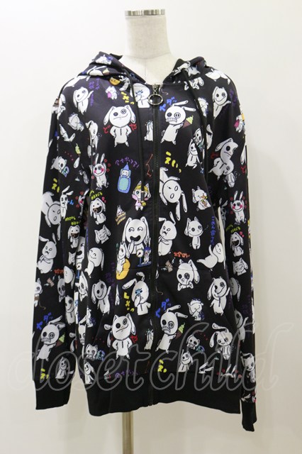 NieR Clothing / 総柄ZIPパーカー F 黒×Nierちゃん H-25-12-08-067-PU-TO-KB-ZH [2100030000030680-H-25-12-08-067-PU-TO-KB-ZH]