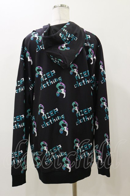 NieR Clothing / 総柄プルパーカー 黒×ONEくん H-25-12-08-068-PU-TO-KB-ZH