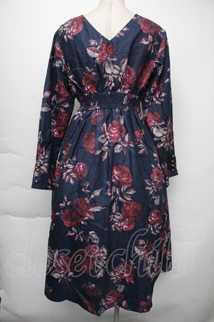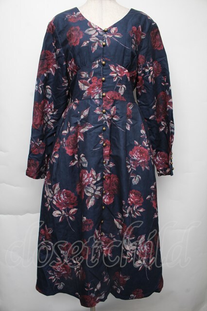 axes femme / 大花ガウンワンピース 紺 S-25-11-30-033-AX-OP-AS-ZS