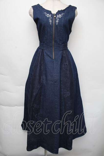 axes femme / バラ刺繍ジャンスカ インディゴ S-25-11-30-042-AX-OP-HR-ZS