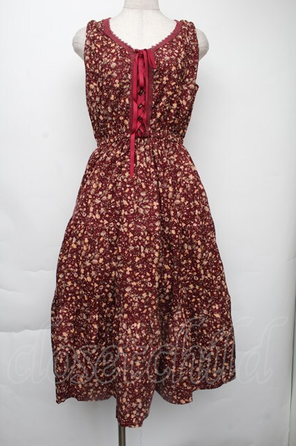 axes femme / ヴィンテージ花柄ワンピース ワイン S-25-11-30-044-AX-OP-HR-ZS