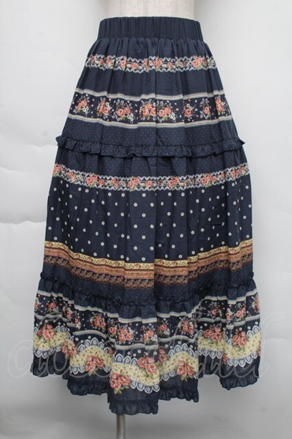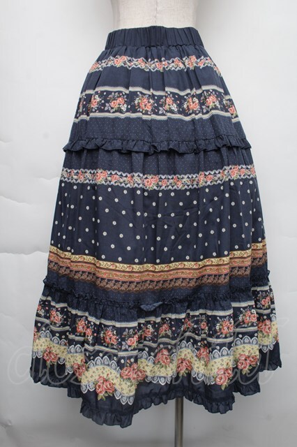 axes femme / ベルト付きボーダーフラワースカート 紺 S-25-11-30-052-AX-SK-HR-ZS