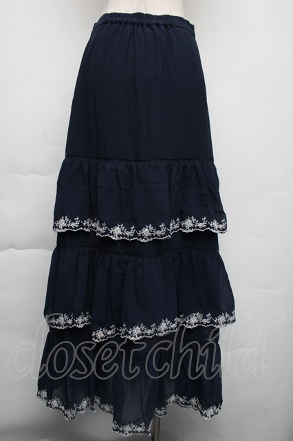 axes femme Nostalgic / 刺繍ティアードスカート 紺 S-25-11-30-053-LO-SK-HR-ZS