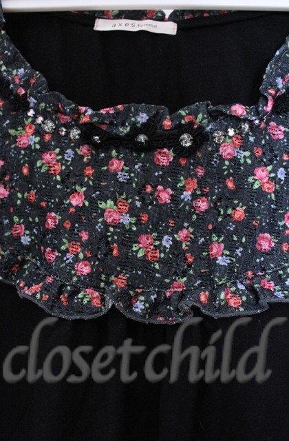 axes femme / 花柄切り替えタンクトップ M クロ O-25-11-30-028-AX-TO-OW-OS
