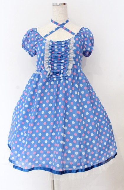 Emily Temple cute / ジョーゼット水玉ワンピース ブルー O-25-11-30-059-ET-OP-OW-OS