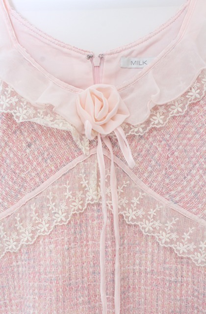 MILK / ローズモチーフツイードワンピース ピンク O-25-11-30-082-ML-OP-OW-OS [2100080000065439-O-25-11-30-082-ML-OP-OW-OS]