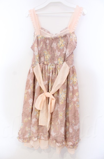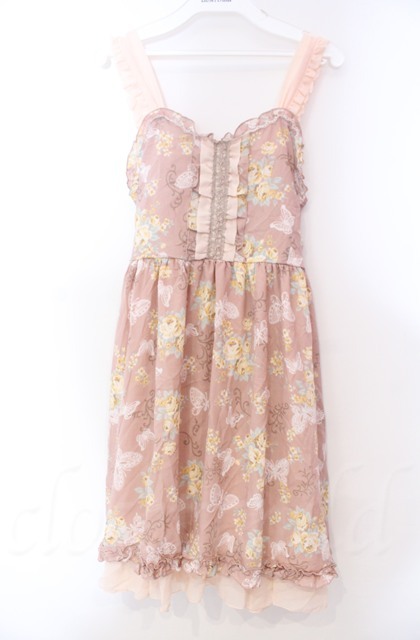 axes femme / ブーケ×蝶柄キャミチュニック M ピンク O-25-11-30-040-AX-OP-OW-OS