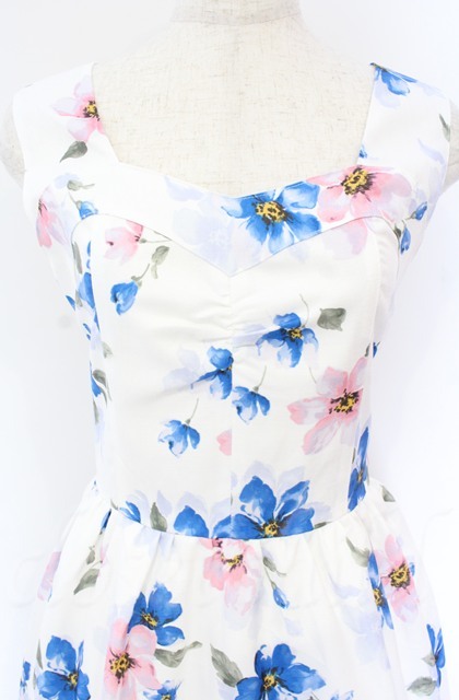 LIZ LISA / 大花柄後ろリボンワンピース シロ O-25-11-30-071-LO-OP-OW-OS