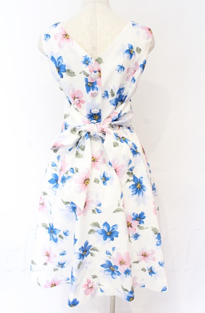 LIZ LISA / 大花柄後ろリボンワンピース シロ O-25-11-30-071-LO-OP-OW-OS [2100080000065417-O-25-11-30-071-LO-OP-OW-OS]