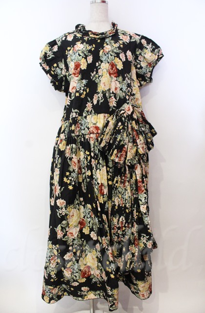 WONDERFUL WORLD / サッシュベルト付きブーケ柄ワンピース【お直しあり】 クロ O-25-11-30-006-LO-OP-IG-OS [2100080000050840-O-25-11-30-006-LO-OP-IG-OS]