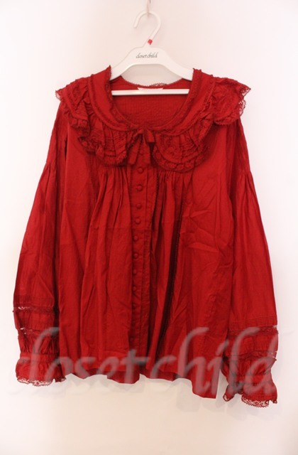 WONDERFUL WORLD / タックフリルAラインブラウス アカ O-25-11-30-020-LO-BL-IG-OS