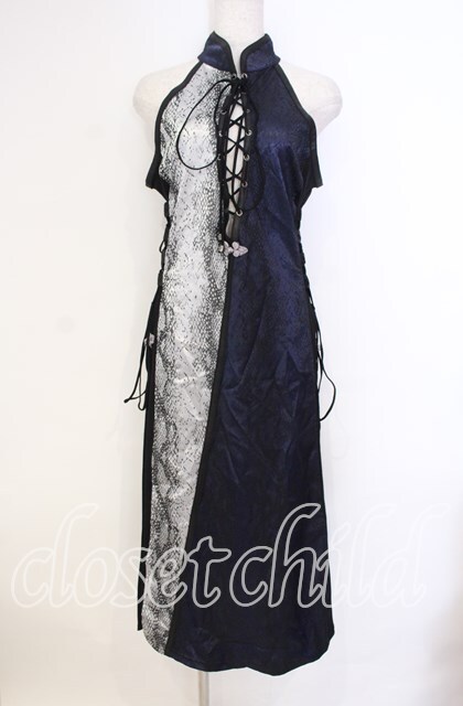 Qutie Frash / チャイナホルターロングワンピ ブルー O-25-12-02-045-QU-OP-IG-OS [2100080000066253-O-25-12-02-045-QU-OP-IG-OS]