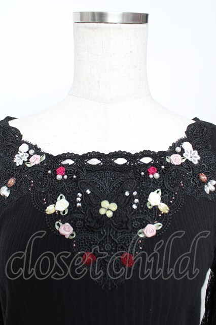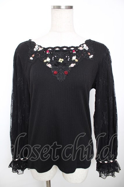 axes femme / ローズガーデン×蝶レースプルオーバー M 黒 Y-25-12-04-050-AX-TO-SZ-ZY