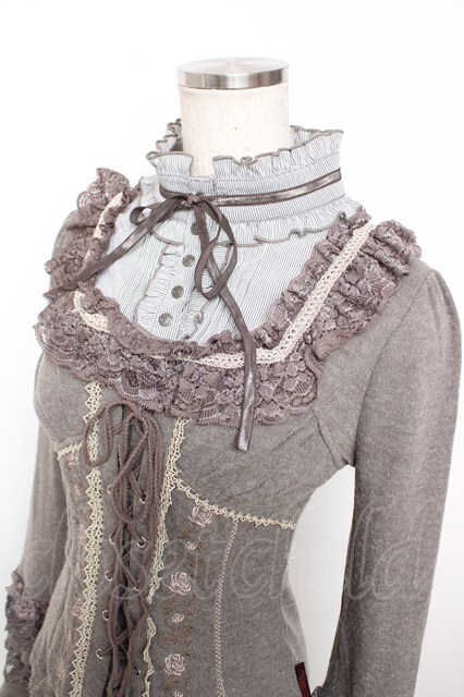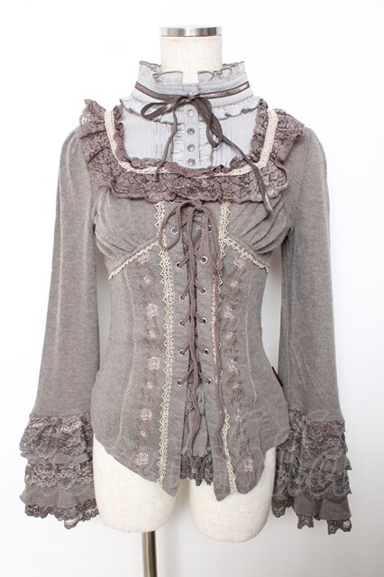 Ozz oneste / 薔薇刺繍レースアップレイヤードトップス グレー Y-25-12-04-064-OO-TO-SZ-ZY [2100070000055401-Y-25-12-04-064-OO-TO-SZ-ZY]