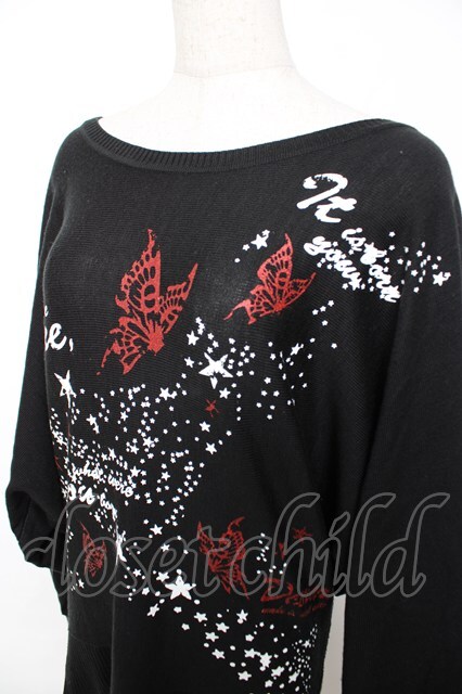 Deorart / ラメ蝶プリントニット M 黒 Y-25-12-04-078-PU-TO-SZ-ZY