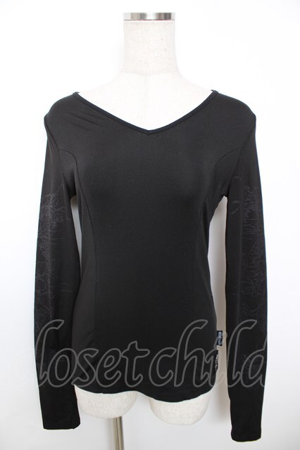 Ozz Croce / 龍プリントVネックトップス 黒 Y-25-12-04-085-OO-TO-SZ-ZY