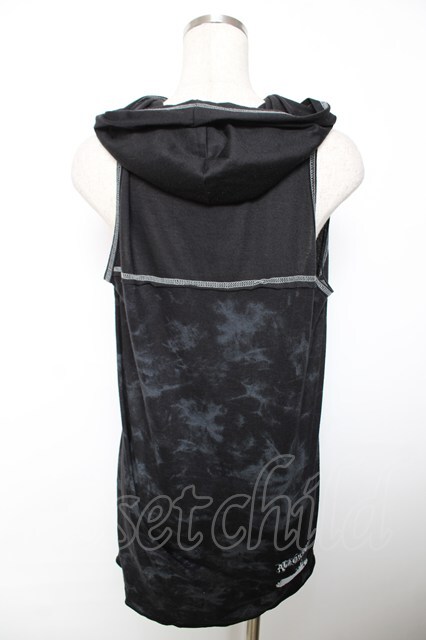 ALGONQUINS / プリント入りフードノースリーブトップス F 黒 Y-25-12-04-097-AL-TO-SZ-ZY