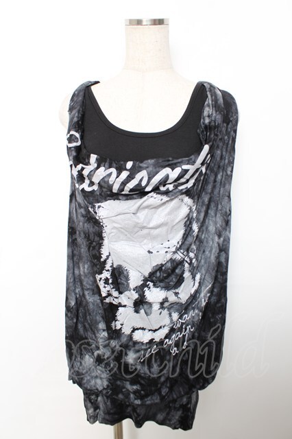 GHOST of HARLEM / ラメptタイダイ柄ドレープノースリーブトップス F 黒×グレー Y-25-12-04-115-GL-TO-SZ-ZY