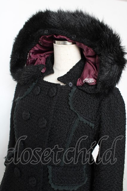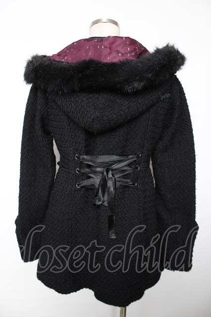 h.Jelly HONEY / リボン×蝶ファーフードコート 黒 Y-25-12-04-135-HN-CO-SZ-ZY [2100070000055390-Y-25-12-04-135-HN-CO-SZ-ZY]