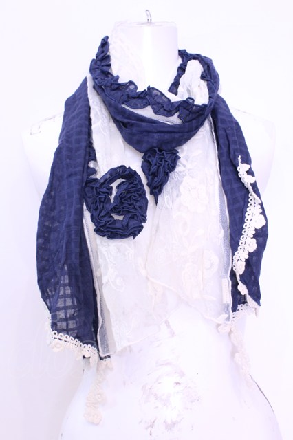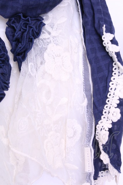axes femme / 格子×チュール刺繍ストール ネイビー×オフ O-25-12-01-036-AX-ZA-IG-OS [2100080000065728-O-25-12-01-036-AX-ZA-IG-OS]