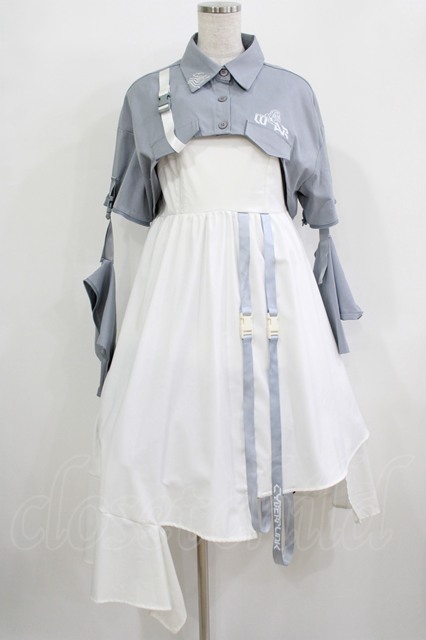 森女部落(海外ロリータブランド) / セパレートシャツ付きジャンパースカート L グレー/オフ H-25-12-09-007-PU-OP-NS-ZH