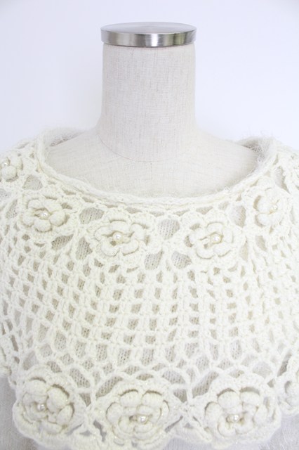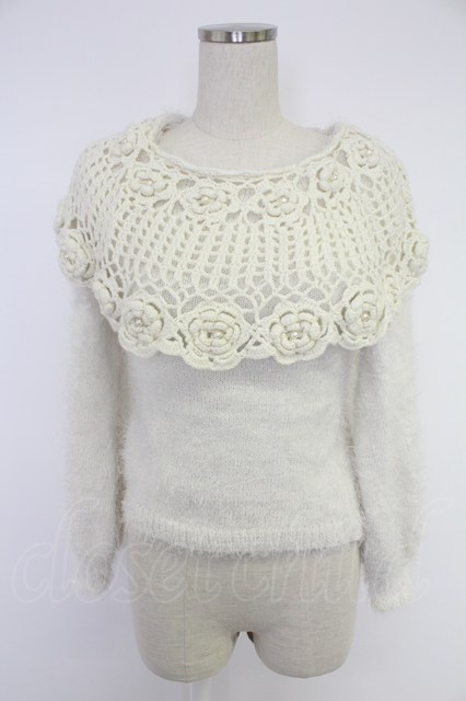 axes femme POETIQUE / 鈎針編み襟デザインニットプルオーバー アイボリー T-25-12-03-003-AX-TO-SA-ZT